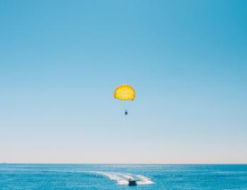 See the Gulf from a bird's eye perspective. You'll glide over the ocean below while attached via a safety harness to a boat, which tows you and an aerial partner of your choosing.