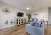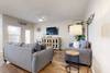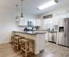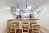 As you step inside, you'll be greeted by an inviting open-concept living area, perfect for unwinding after a day at the beach. The spacious living room features a cozy sofa and loveseat, along with a TV for your movie nights. The dining area, designed for gatherings, features a table that seats six, with additional seating at the kitchen bar for casual meals.