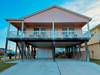 Enjoy staying at this stilt home with beach vibes and an open floor plan for entertaining. The full kitchen is equipped with stainless steel appliances, a Keurig coffee maker, spacious countertops, basic pots, pans, dishes, and utensils. Bring your favorite wine to place in the cooling fridge and sip it on the covered patio with outdoor seating and string lights while taking in the sea breeze. Sit down together for family meals at the dining table with seating for six and four additional seats at the breakfast bar. The living room consists of two couches/ futons and two recliners, perfect for relaxing and watching a movie. The master bedroom (BR1) consists of a King bed, dresser, nightstands, closet, wall-mounted TV, and an ensuite bathroom supplied with a double vanity and tub with sliding glass door. The guest room (BR2) contains a Queen bed, nightstands, chest, and wall-mounted TV. Kids will love the bunk room made up of two Twin over Full bunk beds, a closet, a wall-mounted TV for watching cartoons or movies, and floor space to play games. These two rooms share a hall bathroom with a vanity and tub/shower unit.  Watch the amazing island sunsets from the inviting balcony. Cool off in the shared pool after a day at the beach, rinse off in the outdoor shower, and cook up the day's catch on the grill. This home is just 0.6 miles from the beach and 1.6 miles from shops, restaurants, and nightlife.