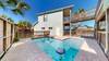 Enjoy a family getaway at this spacious home in a quiet neighborhood 0.4 miles from the beach. It's the perfect oasis with the main home, detached apartment in the back, private pool, game room and a fenced-in yard for privacy. The main living and gathering area is on the second floor. The grand ceilings open up this well-lit area to entertainment and relaxation.  The living area has a couch, 2 accent chairs, a TV with cable and Wi-Fi. The adjacent large dining table has seating for 8 for enjoying freshly prepared meals or games. The full kitchen has ample granite counter space, white appliances and a gas cooktop. It is stocked with basic pots, pans, utensils and a Keurig coffee maker. Sip your morning coffee from the outdoor seating on the balcony while taking in the ocean breeze. The laundry room is right off of the dining area. It has a full-size washer, dryer and cabinet space. There are two bedrooms on this floor. The first bedroom (BR1) has a Queen bed, TV, dresser, nightstand and closet. The second bedroom (BR2) has a Full-size bed, wall-mounted TV, nightstand and closet. Both bedrooms share a hall bathroom which has a pedestal sink and a large tile shower with a glass enclosure. Upstairs on the third level is the Master retreat (BR3). There is a King size bed, TV, nightstand and chest. In the corner is a sitting area with two chairs by the windows for reading and relaxing. The roomy ensuite bathroom has double vanities, a tub and a large separate walk-in shower. There is extra counter space for your toiletries when getting ready. The downstairs bedroom (BR4) has a Full bed and a full bathroom. Both adults and kids will love the garage game room. Enjoy competitive games of cornhole, washers and ping pong. Venture out the second-floor back balcony to find the detached apartment. The quaint living area has a modern sofa with a lounger on the end and a TV. The kitchenette has a sink, microwave, dishwasher and regular coffee maker. The bedroom has a Full-size bed and an ensuite bathroom with a stand-alone shower with a glass door. No need to leave when you have a private pool, a fenced-in backyard, outdoor seating and a propane grill for your cooking needs. There is parking for 4 vehicles, 2 in front and 2 on the side.