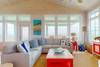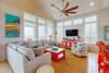 Dolphin's View is a beautiful beachfront home that is truly one of a kind. It offers unobstructed views of the ocean and the most elegant living. The ground level of this home provides a 2-car garage, wet bar, and sitting area that opens to the private pool and 2 bedrooms both with private baths and king-size beds. Up the stairs, to the second level, you will find 4 bedrooms and a central living area. The first 2 master suites have king-size beds with private baths and the other two bedrooms share a bath with a queen in one room and 2 sets of twin bunks in the other. The bunk room is set up in true kid fashion with a sofa for playing games or watching movies. There is a spacious beachfront deck off of this level with a cocktail table that seats 8. Up the stairs to the third floor, you will find a spacious open living/ kitchen area. Take in amazing views with floor-to-ceiling windows.  The grand beachfront patio is appointed with a dining table that seats 8 and is the perfect place to enjoy the waves crashing on the sand. The spacious kitchen is fully equipped with everything needed to prepare meals and snacks from spacious countertops, high-end appliances, drip coffee maker, spices, pots, pans and utensils. The dining table seats 10 and there is additional seating for 6  at the breakfast bar. There is also a half bath to serve this level. Cook up the day's catch on the gas grill while sitting out under the pergola. This home offers the perfect setting for a one-of-a-kind family vacation. Come experience island life at Dolphin's View.
