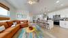 As you step into the main living area on the third floor, you'll be greeted by an open concept floor plan designed for both relaxation and entertainment. The spacious living room features a cozy sectional sofa and a TV, creating the perfect setting for movie nights or casual gatherings. Adjacent to the living area is a dining space that comfortably seats six, complemented by a charming coffee bar, perfect for your morning brew.
