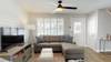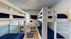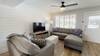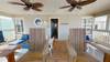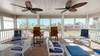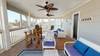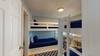 Venture upstairs where you will find three bedrooms and two baths. The master suite (BR1) is outfitted with a King bed and a 42” flat-screen wall-mounted TV, nightstands, and a built-in window seat, perfect for reading a book. The ensuite master bathroom features a double vanity and a walk-in shower with tile accents and a glass enclosure. The bunk room (BR2) has two Twin over Twin bunk beds, a closet, and a wall-mounted TV. The guest room (BR3) has a queen-sized bed, nightstands, closet, and wall-mounted TV. The adjacent shared hallway bathroom is equipped with a tub/shower combination. Walk out onto the screened-in balcony which has partial ocean views, a ping-pong table, and ample seating for evening gatherings or afternoon naps.