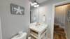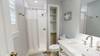 Conveniently located two blocks from the beach, Sebo Seaside is a beautifully remodeled home with many high-end upgrades and a neutral coastal décor throughout. The entire first floor is comprised of an open-concept living and dining space. The chic living room is detailed with a grey palette and white shiplap walls. Relax on the sofa and accent chairs with ottomans around the 50” flat-screen TV with cable and Wi-Fi. Practice your culinary skills in the updated kitchen with spacious quartz countertops, and stainless steel appliances, stocked with pots, pans, and utensils. Gather for meals at the formal dining table with seating for six and additional seating for four at the breakfast bar. Off of the kitchen, is a laundry room with a full-size washer and dryer for your convenience. The downstairs full bathroom is at the bottom of the staircase with a large vanity sink and tile shower.